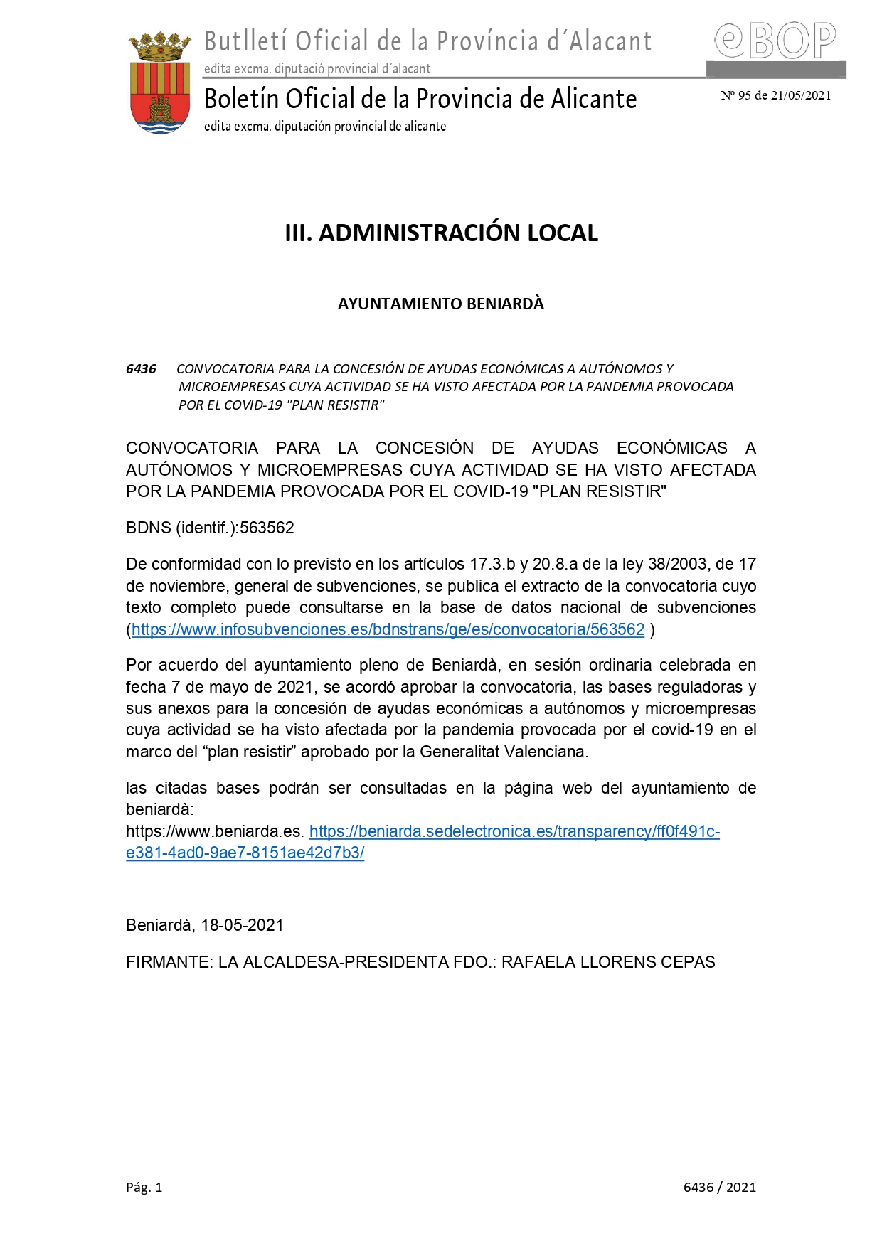 “Convocatoria de subvenciones a los Ayuntamientos y entidades locales de la provincia de Alicante para la redacción de los Planes …