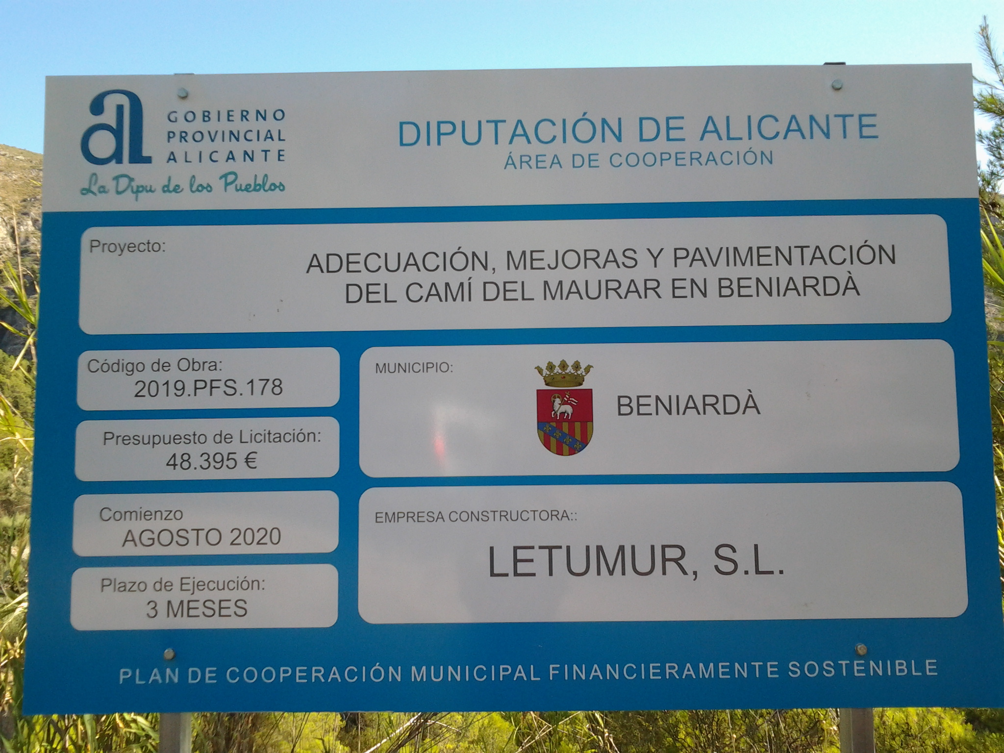 Finalizada la obra  “Adecuación, mejoras y pavimentación del Camí Maurar”, incluida en el Plan de Subvenciones de la Excma. Diputación Provincial de Alicante para Inversiones Financieramente Sostenibles, Anualidad 2019 (Fondo de Cooperación), con un presupuesto total de licitación de 48.395,00 €.